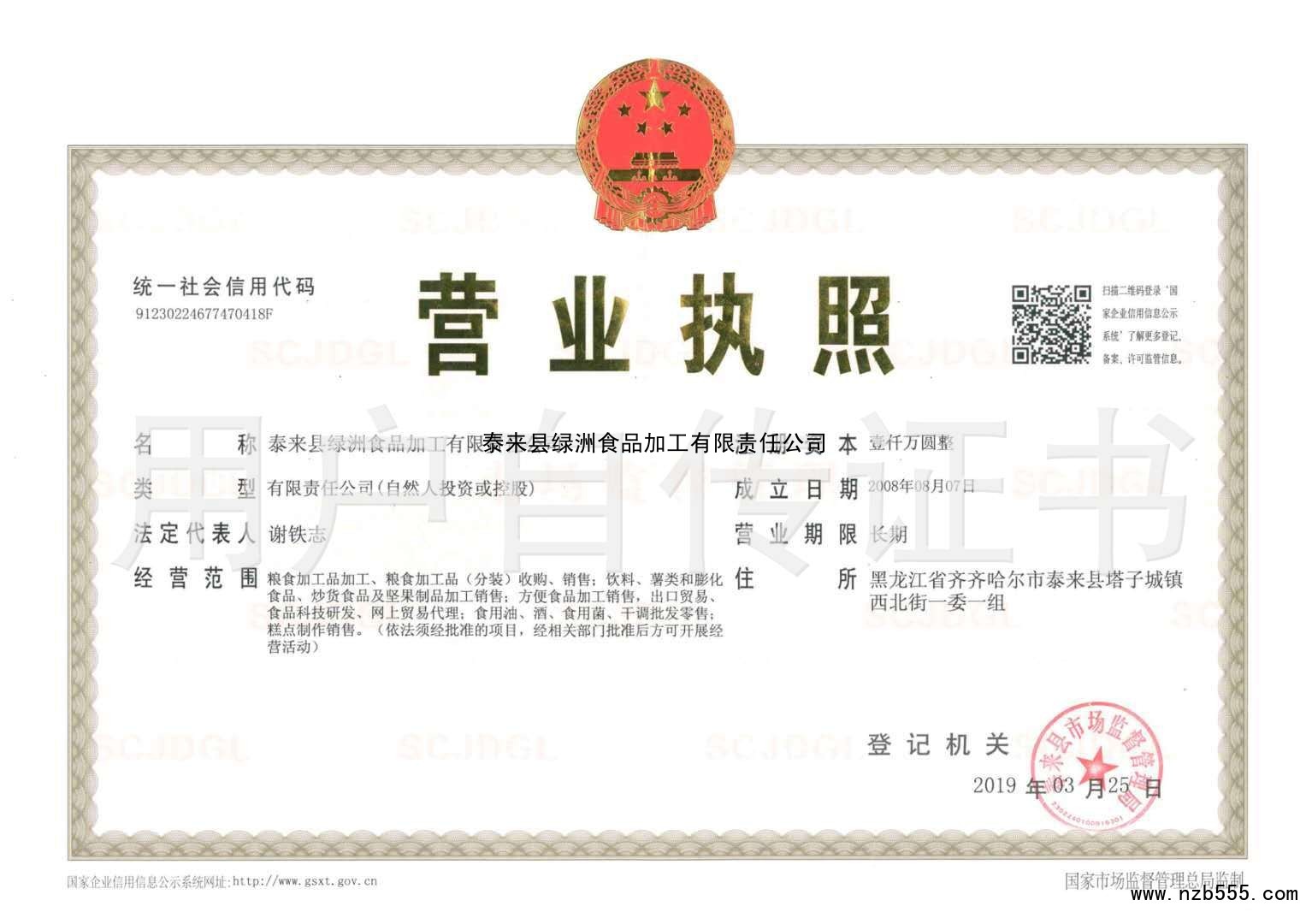 泰來縣綠洲食品加工有限責任公司