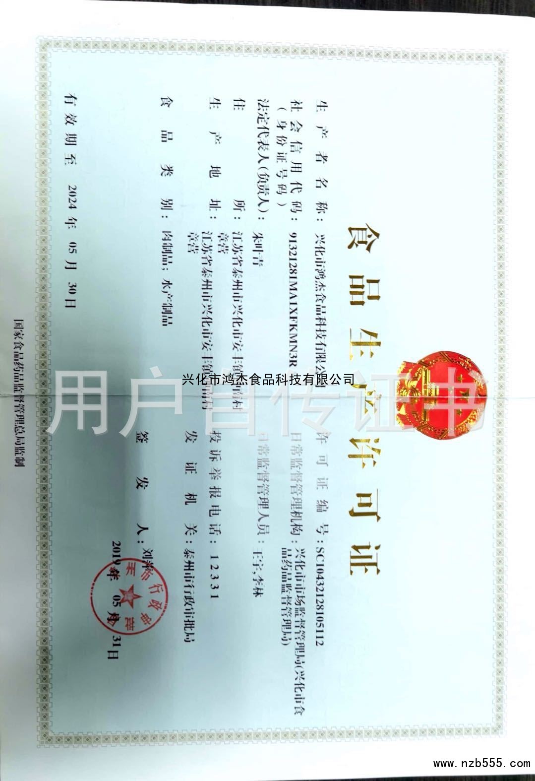 發(fā)證機(jī)構(gòu):   泰州市行政審批局 發(fā)證時(shí)間 :   2019-05-31