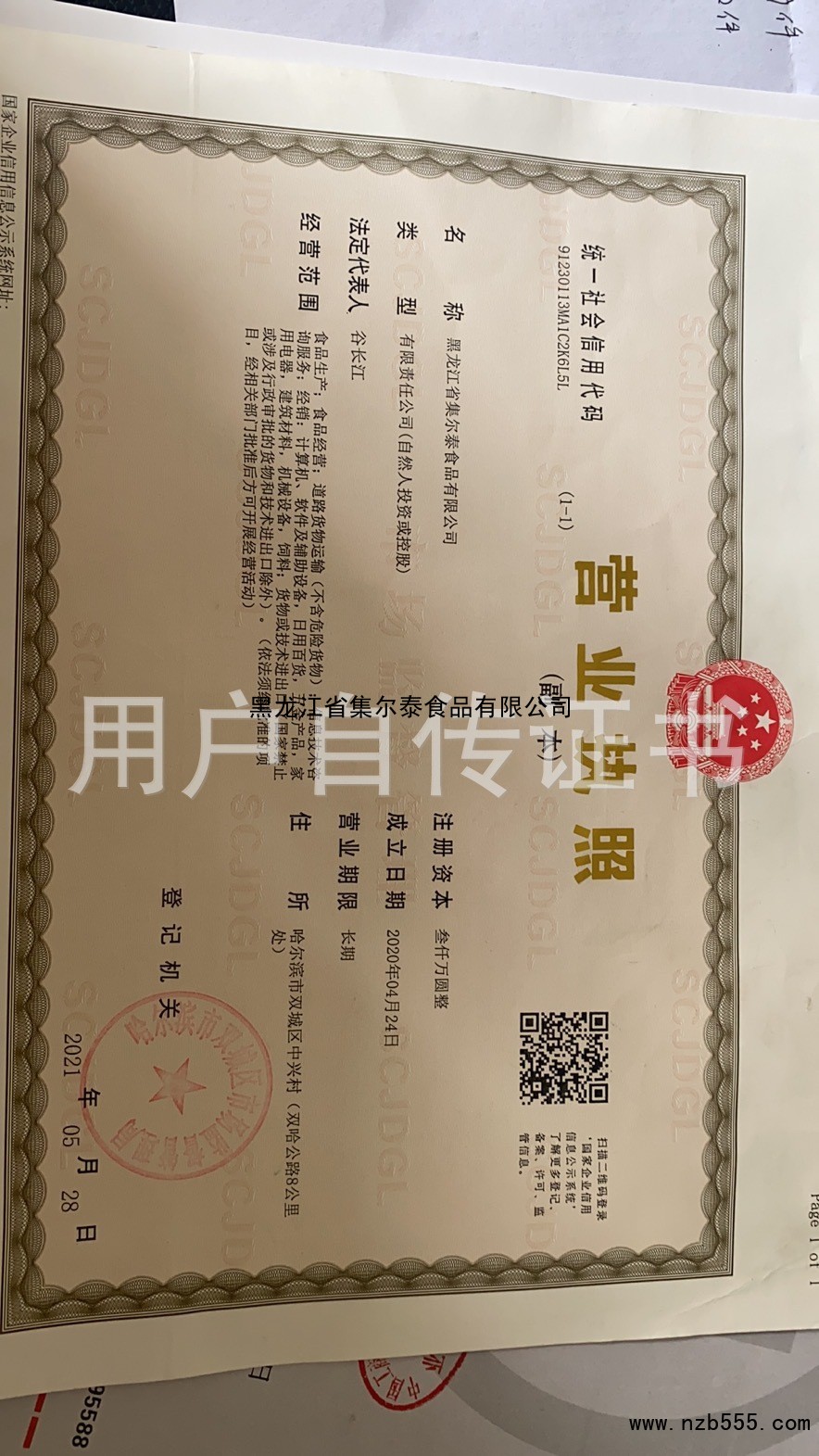 | 發(fā)證機(jī)構(gòu): | 哈爾濱市雙城區(qū)市場(chǎng)監(jiān)督管理局 | 發(fā)證時(shí)間 : | 2021-05-28 |
