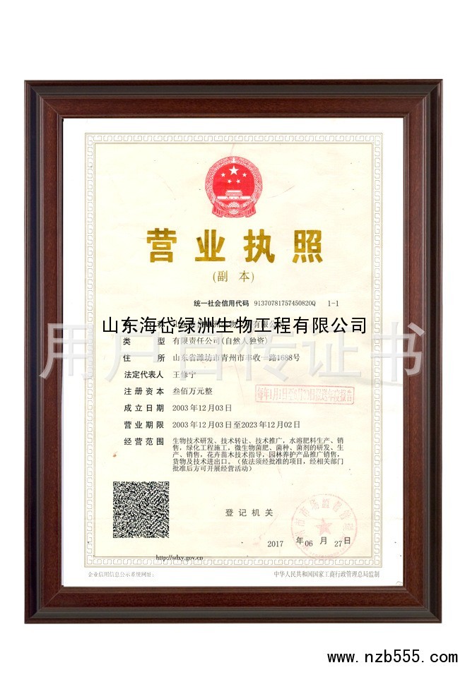 生物技術研發、技術轉讓、技術推廣,水溶肥料生產、銷售,綠化工程施工,微生物菌...