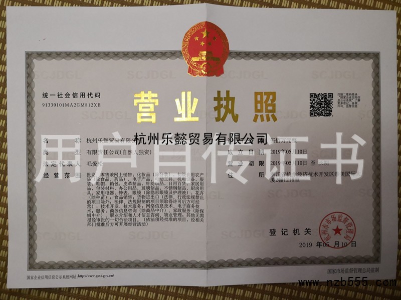 | 發(fā)證機(jī)構(gòu): | 杭州市市場(chǎng)監(jiān)督管理局 | 發(fā)證時(shí)間 : | 2019-05-10 |