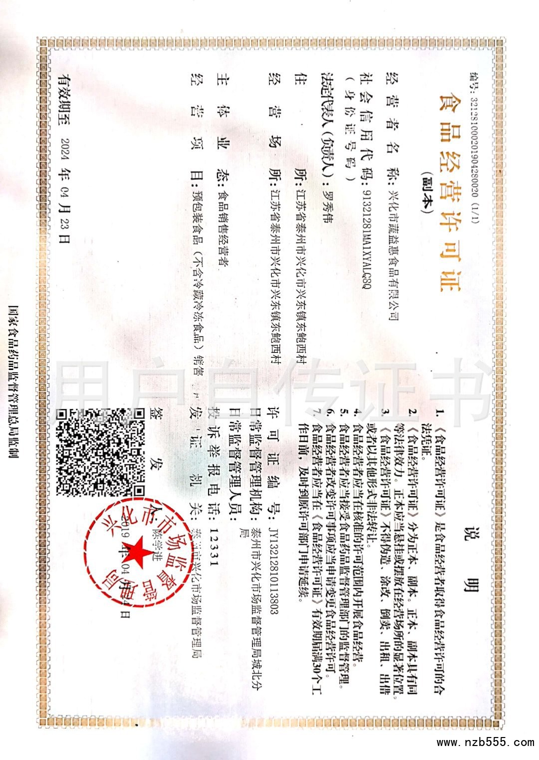 食品經營許可證