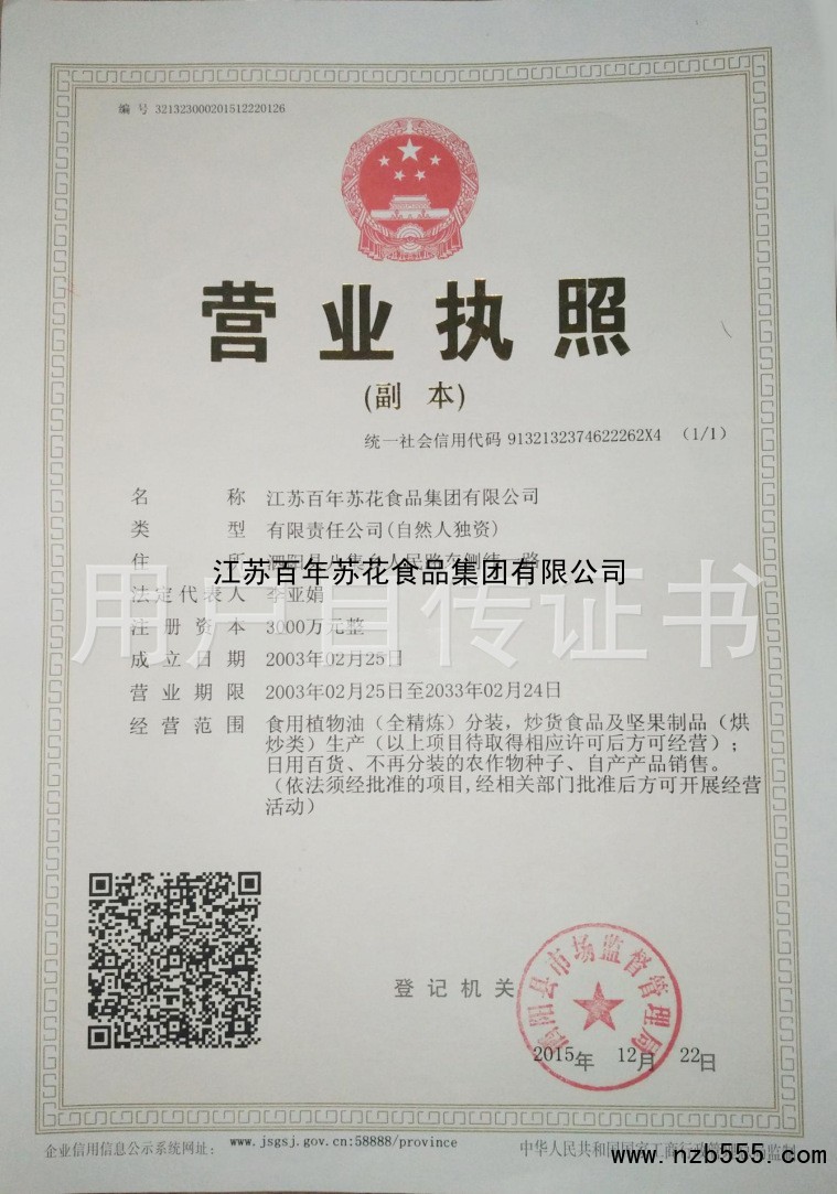 江蘇百年蘇花食品集團有限公司