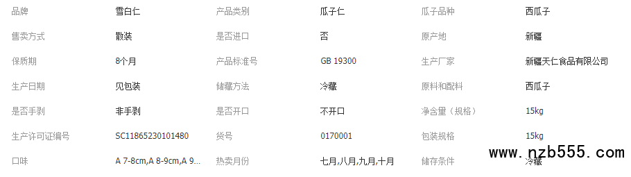 詳細(xì)信息 ![]() 各位商家朋友,西瓜子仁 30斤/箱,請(qǐng)拍30斤的整數(shù)倍。