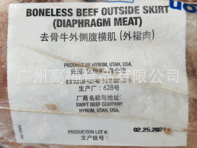 美國628廠精選藍帶外裙肉/橫膈膜冷凍去骨雪花牛排餐廳酒店用品