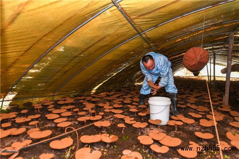 9月25日,在吉林省白山市靖宇縣大北山村,農民高秀虎在采摘靈芝。新華社記者 張楠 攝