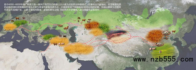 距今6000-4000年前草原之路-綠洲之路沿線地區農業擴散交流和生業模式格局示意圖