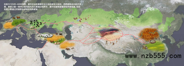 距今10500-6000年前草原之路-綠洲之路沿線地區農業擴散交流和生業模式格局示意圖