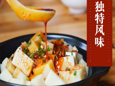 米豆腐是川、湘、黔、贛、鄂等地區的地方名吃,潤滑鮮嫩、軟硬適中,酸辣可口、老少皆宜,它是用大米淘洗浸泡后加水磨成米漿,然后加堿拌勻后進入米豆腐機中蒸煮熟化成型,冷卻后形成圓柱狀或塊狀“豆腐”。是人們喜愛的一種米制食品。