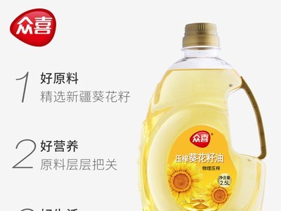 眾喜2.5L葵花籽油物理壓榨植物油食用油家用送禮