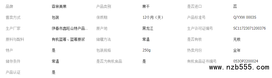 九鑫山珍有機藍莓干大