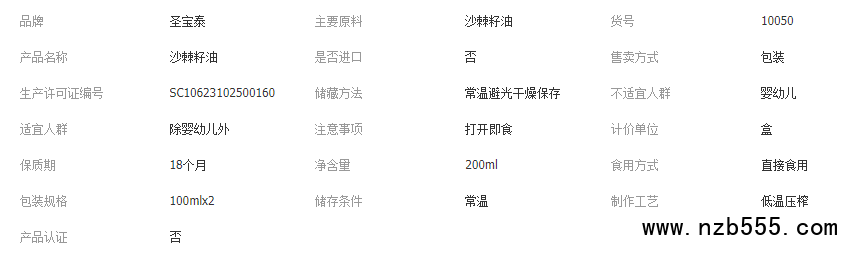 圣寶泰100ml沙棘籽油禮盒裝低溫壓榨沙棘油食用冬果源頭工廠低溫
