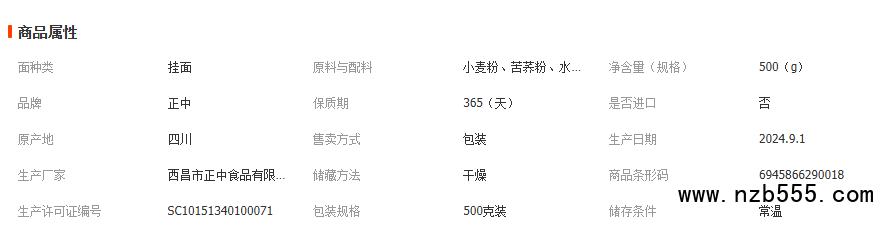 正中苦蕎掛面500g袋裝