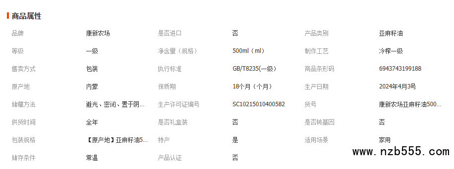 康新農場純亞麻籽油物理一級冷榨內蒙古胡麻食用油天然亞麻酸