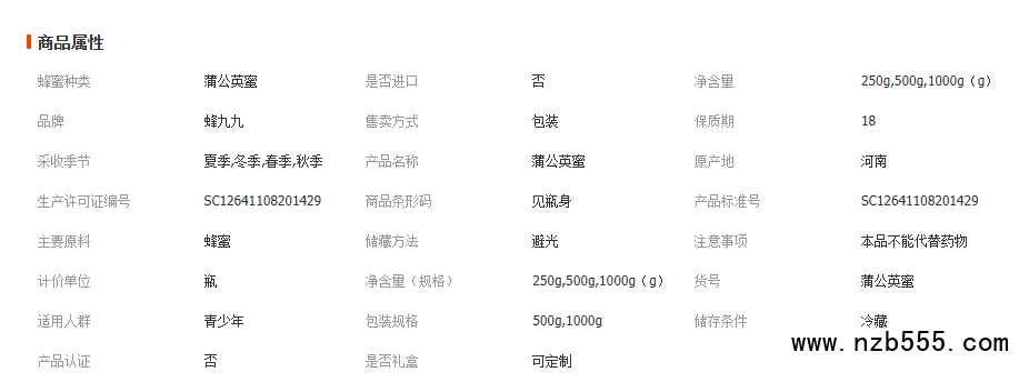蒲公英蜂蜜500g結晶蜂