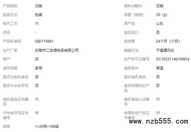 琪駿20g花椒袋裝燉鹵煮菜醬菜家庭餐館食用干花椒粒香料調料鹵料