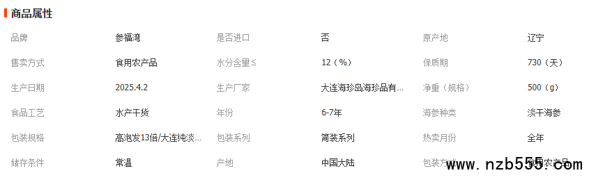 大連純淡干海參國標海