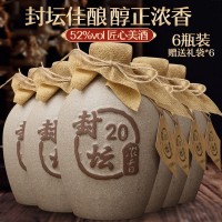 源頭白酒廠家52度六壇裝純糧高粱濃香型封壇老酒陳酒整箱批發